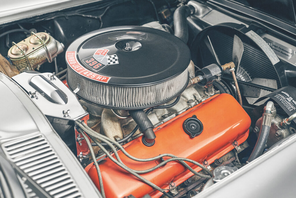 Our feature car, owned by industrial design consultant Tim FitzGerald, has the rare big-block 396ci (6.5-litre) V8 option, with a claimed 425bhp. That figure is gross, measured at the flywheel without accessories such as the alternator, and on open headers, so the real output is probably closer to 350bhp.