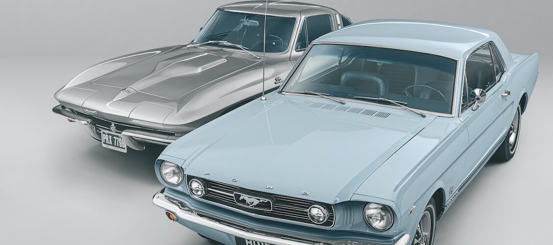 Chevrolet Corvette Sting Ray or Ford Mustang? Very different in character, yet both of them embody the American Dream