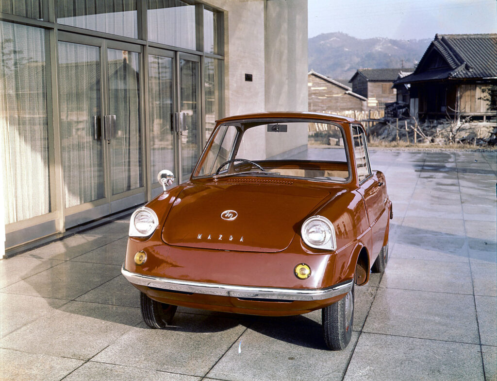 Why was it such a hit? Up to that point, kei cars had been very slow and not particularly rewarding to drive. Although governed by the same rules as the more established competition – such as the Subaru 360 – Mazda focused on making the car as lightweight and fun-to-drive as possible. It was of monocoque construction and featured an aluminium bonnet, with plexiglass for the sliding side windows and curved rear screen. Though technically a four-seater, the rear bench was intended only for very small children.
