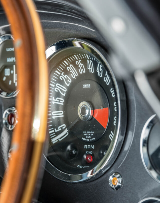 When it was running well, the potential of the V8 was obvious. ‘It was a very nice motor,’ says Bill. ‘Quite docile. It gave 80 or so more horsepower than the six, which meant it could be quite exciting if pushed!’ Apparently it could also chew through a set of Avon Turbospeeds in as little as 3000 miles. The wire spokes were painted rather than chromed, because that made them less likely to break.