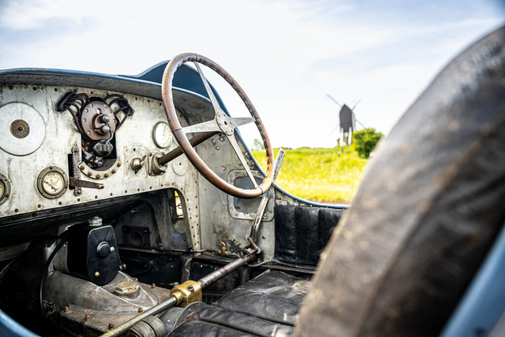 Just about the only deviation from originality on this car is a high-torque electric starter – it had to be started by hand, back in the day – but there’s a very good reason for that: the new owner, a Danish enthusiast, is keen to use the Bugatti on long-distance rallies, where having to hop out continually to crank the engine over would be a real pain. So, slip the car out of gear – the outside handbrake has no ratchet, so you leave the car in gear when parked up – turn the thumb-switch for the ignition, and press the button on top of the exposed starter. It needs only the briefest push before the straight-eight engine erupts instantaneously into life with a thrilling snarl. It sounds magnificent, gulping oxygen through its pair of chunky, unfiltered Solex carbs, and you haven’t even done more than blip the throttle yet.
