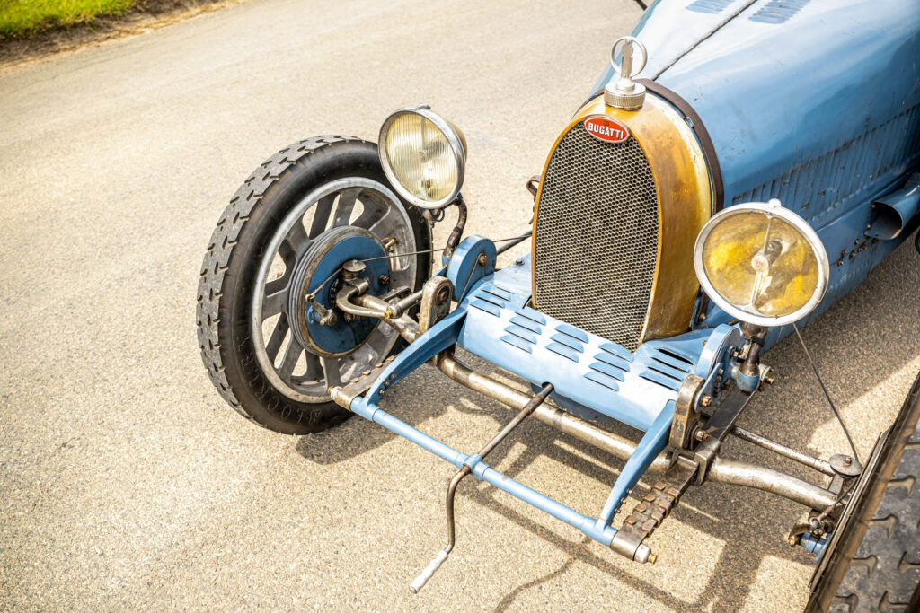 Narrow, beaded-edge tyres running at the high pressures needed to keep them seated on their rims translate to light, direct steering, so pulling out of a parking spot requires little to no effort. The clutch is surprisingly progressive and not at all sharp, but it doesn’t have a lot of travel and so you have to balance the revs carefully as you move off, particularly when making a hill start. This is when you may be extremely grateful for that aftermarket starter motor: driving a Bugatti is cool, but stalling a Bugatti and then having to ‘get out and get under’ when there’s traffic behind you is definitely not.