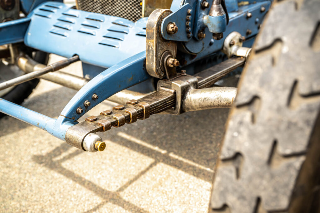 Gentry Restorations’ super-sensitive recommissioning included adding patinated modern copies of the magnesium alloy wheels shown in the 1930s photo, and cleaning off the non-original blue paint where it had been liberally sprayed over suspension and steering parts that should be left as polished bare metal. What is truly astounding is that the radiator core, after a thorough cleaning, did not need to be replaced. There’s no anachronistic electrical fan and the engine showed not a trace of overheating during our stop-start driving on one of the hottest days of 2022.