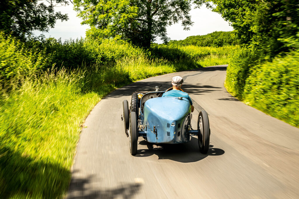 Modern traffic can be a bit too slow for them,’ muses Stephen Gentry. We’re standing beside a patinated blue Bugatti Type 35A, parked at the side of a country road on a scorching hot day. I’ve just had my first drive of the car and my head is still reeling with just how together, how joyful, how utterly fabulous this particular Bugatti is.