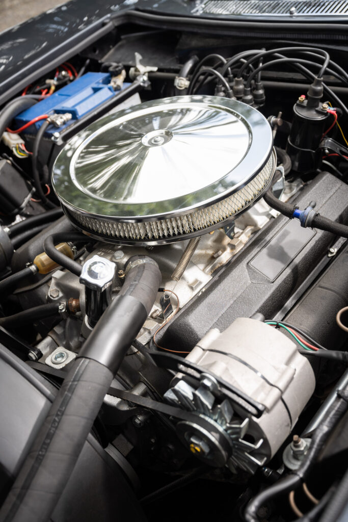 Mechanically, there has been similar attention to detail. The engine is a matching-numbers Corvette 327 rebuilt by Dresdener Classic Handel, while the box is a Tremec five-speed with the same ratios as the period four-speed, and all squeezed into a casing the size of the old four-speeder’s so that the tunnel and console didn’t have to be modified to accommodate the extra cog and the longer-legged touring it facilitates.