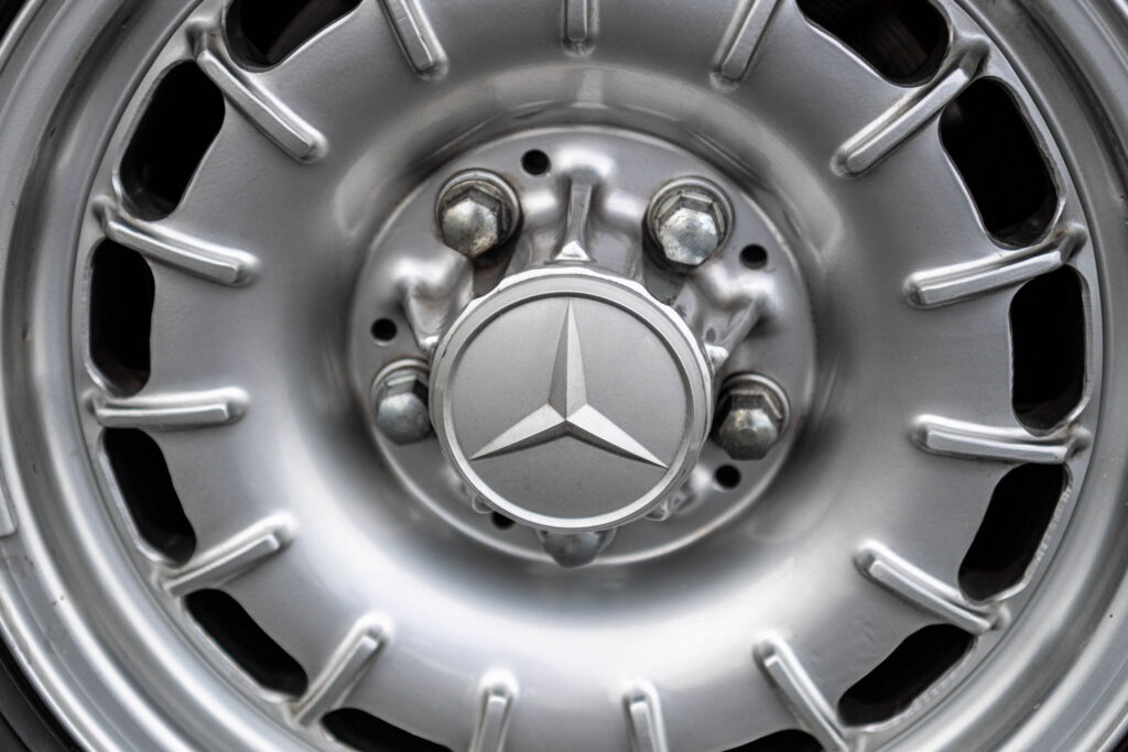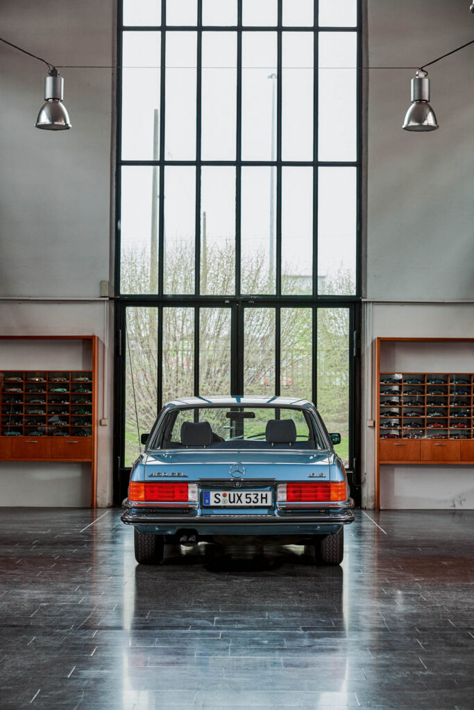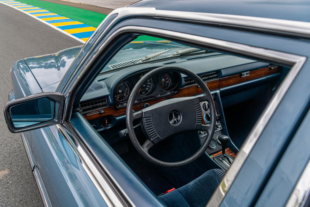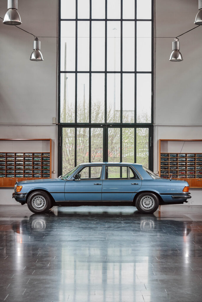 The one in these pictures has been in the Mercedes-Benz Museum’s collection since the early 1990s. It used to belong to the fleet of an industry association, so has been kept well-maintained all its life. I suspect the paint isn’t that applied at the factory all those years ago, but I’m assured that the panels and brightwork outside and the walnut fillets and ribbed velour trim within are original. Which makes its odometer reading of 647,736km utterly astonishing. That’s more than 400,000 miles!