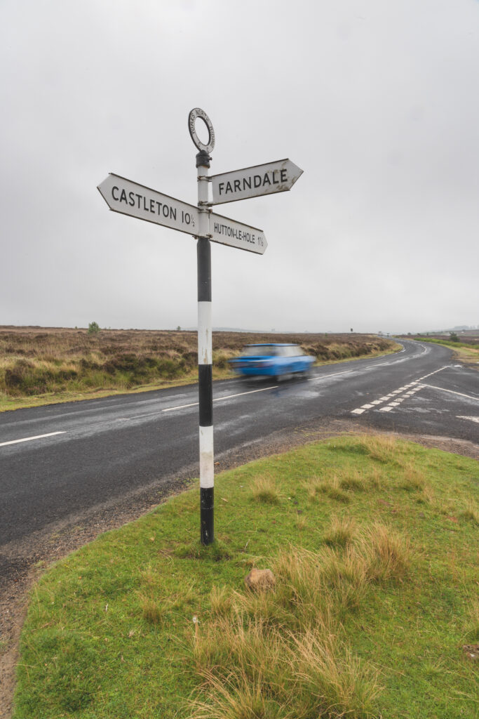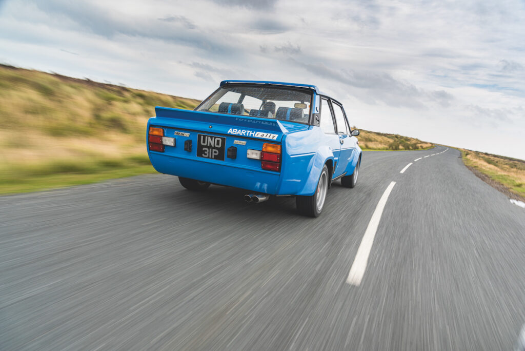 Fog,Unreasonable, unseasonable fog. It’s early morning and as I venture along Blakey Ridge I can barely see the edge of the road, let alone the staggering views across this particularly epic stretch within the North York Moors. I have little idea where I am; external references are limited to the damp-looking tufts of reedy grass and prickly gorse that scratch the patchy tarmac’s edges immediately off-piste, while the tarmac itself is being nibbled rather than gobbled by the wheels of my car. Yet sat-nav suggests the rendezvous is close, and suddenly my headlights pick out a flash of vivid blue within the murk. Not a freak patch of sky, but the bold and boxy body panels of the Fiat 131 Abarth Rally Stradale. We’ve arrived. Hopefully the weather will learn to behave itself.