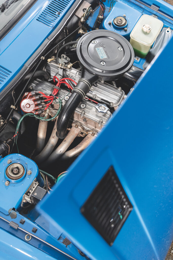 The ‘C’ badges on this example’s front wings suggest the presence of a Colotti transmission – all Stradales left the factory with a dog-box in order to homologate the same type of transmission for the Corsa. Problem was, in an era that had long enjoyed synchromesh, no road driver wanted to go back to the days of a crash ’box; to that end, there’s a standard five-speed transmission in place here. ‘I’ve never heard of a single Stradale that ran with the dog-box,’ Kevin Theaker, proprietor of 131 Abarth specialist RSD Rallysport Development, tells me.
