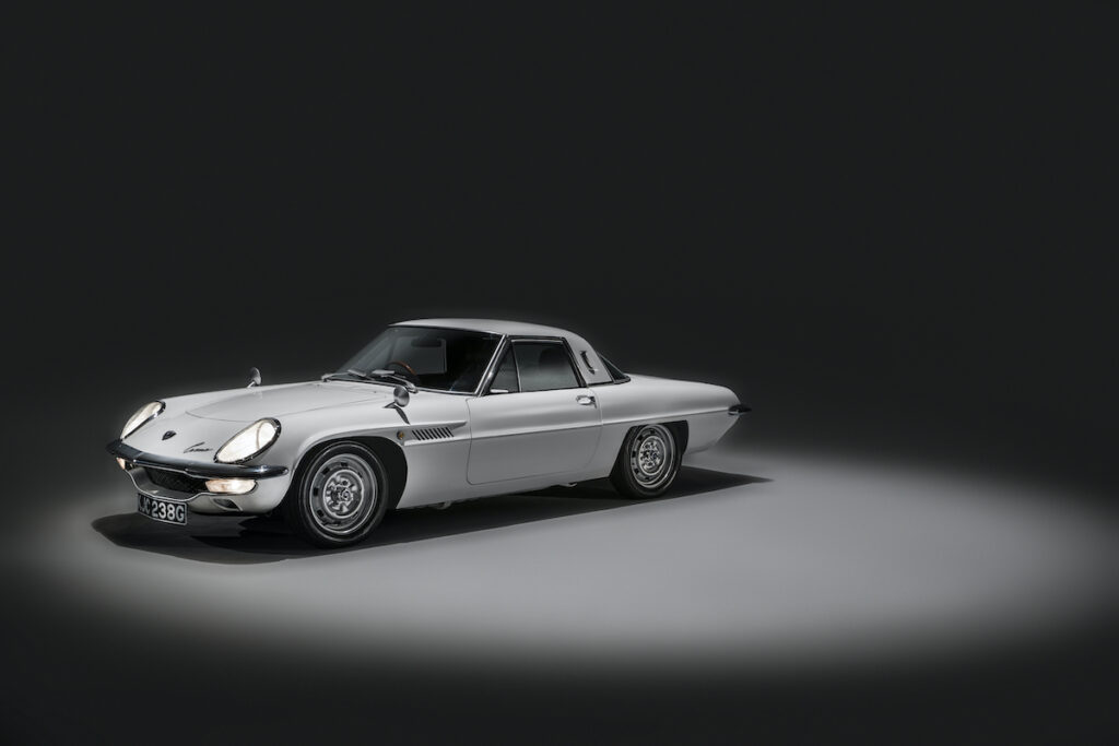That NSU Spider was the first viable, semi- production, rotary-engined road car, but Mazda, too, had shown its hand in 1963 with the first Cosmo prototype. Its twin-rotor L8A engine had a total swept volume of 798cc, equivalent by the ‘doubling’ convention of the time to a 1596cc piston engine. A larger-engined Cosmo, its 110bhp 10A unit having a 982cc displacement, appeared at the 1964 Tokyo motor show, and from early 1965 the first of 80 pre- production Cosmos began to appear for testing by Mazda engineers and dealers. Finally, in mid-1967, the Cosmo 110S went on sale. IT’S LOW. VERY LOW. And on this 1968 Series II Cosmo, no longer a 110S because its 10B engine is uprated to 128bhp from the same 982cc capacity, is found nearly every sports-car motif deemed cool in themid-1960s. You could buy a Cosmo in Britain – the 110S cost £2606 on its early-1968 arrival here – but very few did. Mazda UK owns this particular Cosmo, recently acquired in pieces from Japan and restored here, and knows of only a couple of others in the UK: an orange example and one that was at the Goodwood Revival’s Bonhams auction. The Series II has a leering mouth below its front bumper where the Series I had eight vertical cooling slots, and a longer wheelbase (by about 6in) to calm the ride and handling. The overall length is unchanged; the extra length is inserted between the door’s rear edge and the rear wheelarch, with a corresponding reduction in rear overhang. Clearly Mazda’s designers liked the long-tail look, though, so the Series II’s rear bumper has less wraparound in order to maintain the space between arch and bumper-tip. Motor magazine’s February 1968 Cosmo road test refers to the body’s Bertone styling, but the writer might have been misled by the Italian design house’s work on the pretty Luce saloon, once quite popular in the UK. The look of the Cosmo, named to reflect the enthusiasm for the unfolding Space Age, was the work of Mazda’s own Heiji Kobayashi. His thought processes might have moved in parallel with Bertone’s, or even Michelotti’s, when devising strakes over wheelarches, but the Cosmo has a style all its own. So, the visual sportifiers. Headlights under clear covers, check. Streamlined wing mirrors, check (on the car originally, at least; this one has more modern replacements). Anti-lift vanes on the arms of the clap- hands wipers, check. Louvres in the front wings, check.