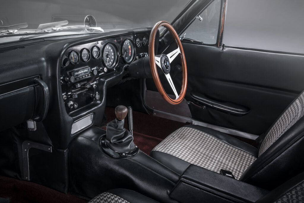 Footrest for the left foot, check – but missing from this car. And if we move round to the tail, we see big rear lights dissected by the bumper, brake lights illuminating all four lenses, the tail-lights illuminating just the upper pair, which also flash (still red) for the indicators. Inside, simple round dials fill a black instrument panel that is cowled and extended down towards the gearlever in quite a modern way. The switches look like aftermarket replacements, but they are authentic apart from the addition of actuators for horn and high beam to remedy non-functionality in the horn button and column stalk. The reach-adjustable Nardi-Danesesteering wheel is non-original – it’s like the one in some special-edition Mk1 MX-5s – but the vibe is right: original equipment was also a wood-rim three-spoker, but with holes instead of slots in the aluminium spokes. Snugly ensconced in the compact seats with their houndstooth vinyl centre sections, the Cosmo’s occupants have surprising legroom but feel very low to the ground. It feels just right, though, because the scuttle is similarly low thanks to the engine’s lack of height. The high transmission tunnel and gearlever remind you of the reality of the gearbox’s position relative to the axles, the fixed points. The rest of the Cosmo has simply sunk down among them.
