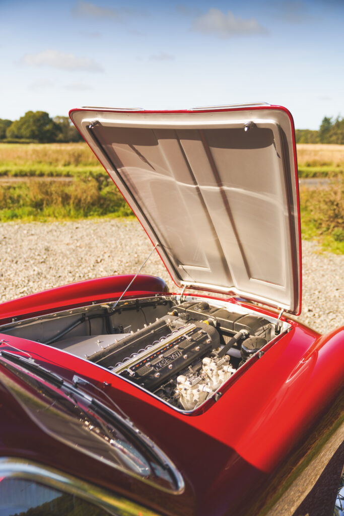 No two were the same, the shape and details gradually evolving over the two-year production run, and other features being agreed between customer and carrozzeria. So this one has a larger grille than earlier examples, those distinctive vertical air vents in the front wings, particularly curvaceous rear wings, two separate bonnet scoops, vestigial bumpers in aluminium, and an oval-shaped instrument binnacle. Reflecting its dual roles as road car and racer, Perspex was used for all the glazing bar the front windscreen.