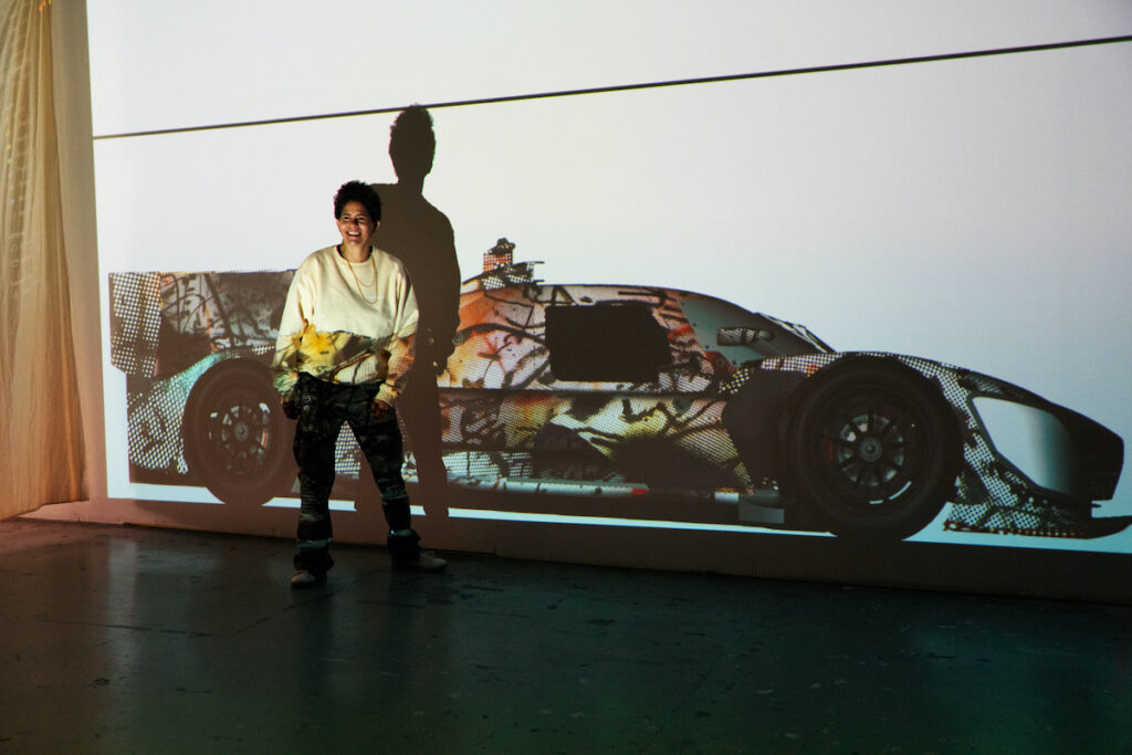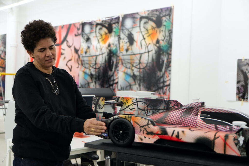‘In the studio where I had the model of the BMW M Hybrid V8 I was just sitting in front of the painting and I thought: What would happen if this car seemed to go through that painting and becomes affected by it,’ she added. ‘The idea was to make a remix, a mash-up of the painting. I kept seeing that painting kind of dripping into the car. Even the kidneys of the car inhaled the painting.’