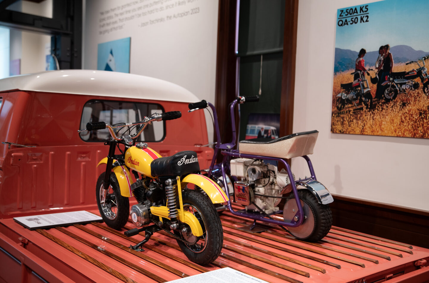 That explains a strong surf and beach theme including a 1963 Volkswagen Transporter and a typical woody surf wagon as well as monkey bike and wild electric cars for kids, not least a highly desirable 1956 Bimbo Ferrari.