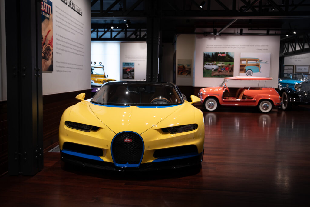 The full list of exhibits is as the bottom, but to g ive you a flavour, they range from 1930 Packard Eight Sport Phaeton to 2024 Lamborghini Huracán Sterrato via 1951 Fiat 500C Topolino Giardinera and 2019 Bugatti Chiron Sport Sky View. And, of course, the solitary motorcycle, a 1955 Schwinn Whizzer Model WZ-1955.