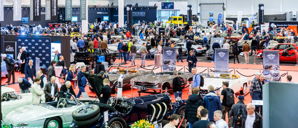 The event showcased some 3000 classic cars or which almost two thirds were for sale. As well the thousands of cars on dealer stands, there were hundreds more in the indoor and outdoor private car corrals, ranging from affordable youngtimers such as a BMW E30 or VW Golf 2, Triumph Spitfire or a Mercedes SLK for a few thousand Euros, to a 1937 Riley Kestrel for €65,000, or an unrestored ex-Belgian Royal family 1948 Austin Sheerline.