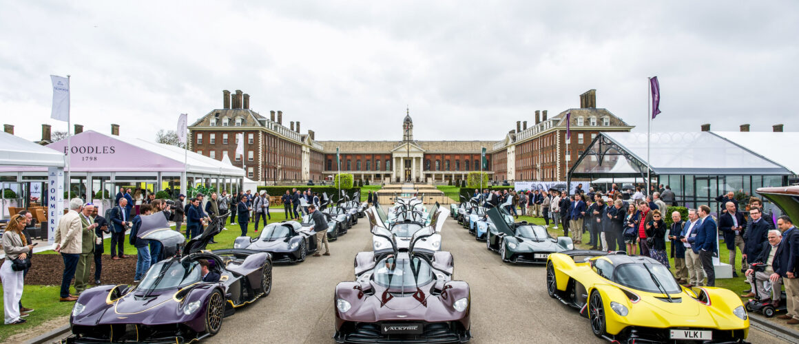 The largest-ever gathering of Aston Martin Valkyries took place at Salon Privé London today (Friday 19 April). There were 14 of the British hypercars, joined by Adrian Newey – the inspiration behind the car – as well as a brace of One-77s, a Vulcan and a V12 Speedster at the Royal Hospital Chelsea. The breathtaking display was organised by the AMV Owners Club in partnership with Salon Privé and the crowds were excited to see Newey, recently crowned World Car Person of the Year.