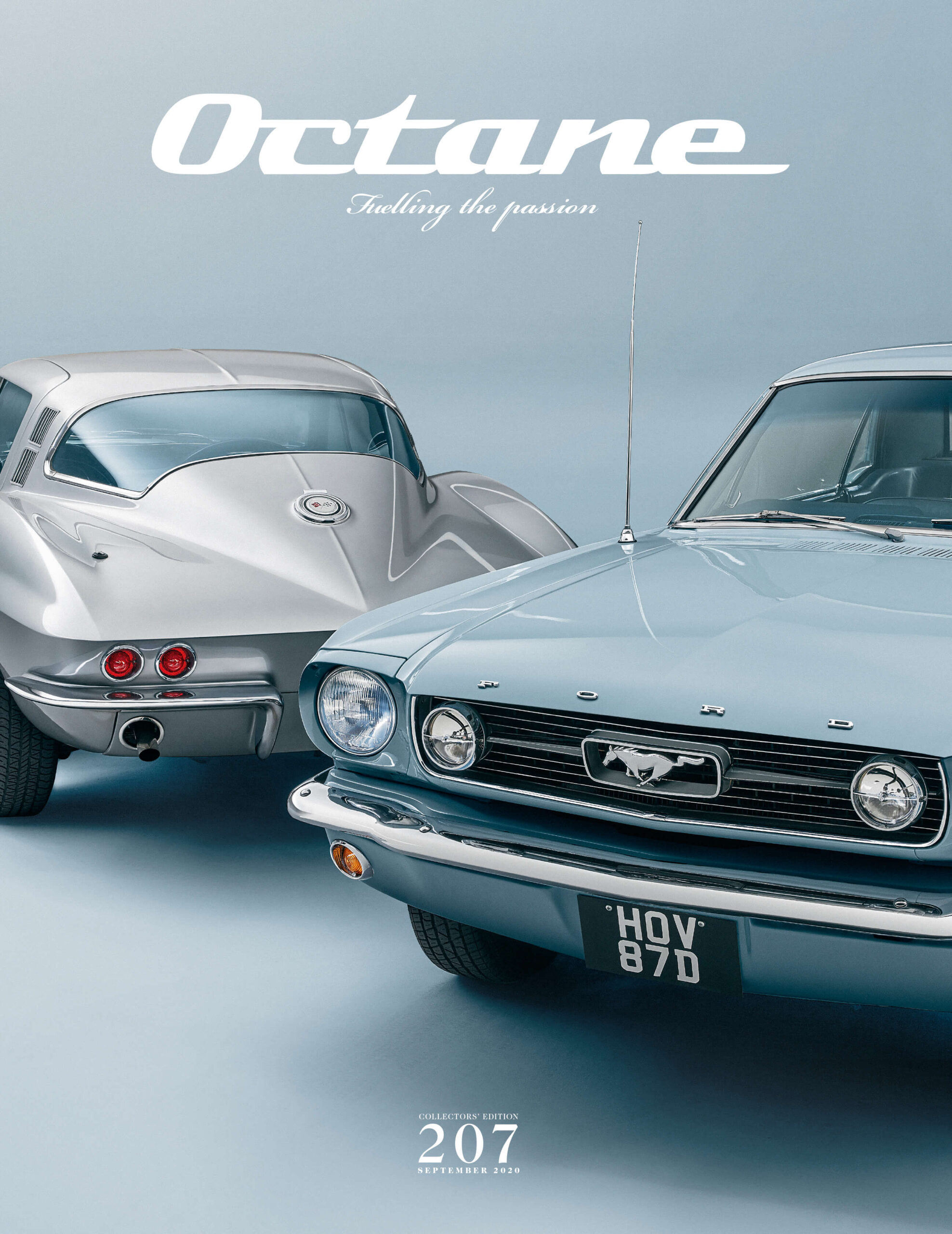 STING RAY OR MUSTANG? -America’s sexy ’60s sports cars go head to head as Mark Dixon explores their styling, cultural and engineering heritage, FORMULA 1 TRACKDAY CAR – Rodin FZED: king of the mortals’ pitlane, NAPIER vs BENTLEY – Reliving the speed battles of Brooklands, MERCEDES C 111 – Celebrating five decades of Mercedes’ record-breaking rotary-powered supercar, REMEMBERING GRIFFO – A personal recollection of Griffith Borgeson, ABARTH GHIA COUPE – Lost ’53 Turin show car breaks cover again, THE OCTANE INTERVIEW – Rally driver and team chief Jacques Alméras, GEARBOX – Octane writer and former ad man Delwyn Mallett, COLUMNS – Spleens of Jay Leno, Derek Bell, Stephen Bayley and Robert Coucher given their monthly venting, LETTERS – Memories of selling Esprits in the ’80s, OCTANE CARS – Waddington says goodbye to his 944 after eight years; Coucher swaps XK140 for pedal-power, OVERDRIVE – Escaping LA confinement in an Alfa Giulietta, GONE BUT NOT FORGOTTEN – Champion of car styling, Harley J Earl, ICON – Eritrea’s Futurist Fiat Tagliero service station and more.